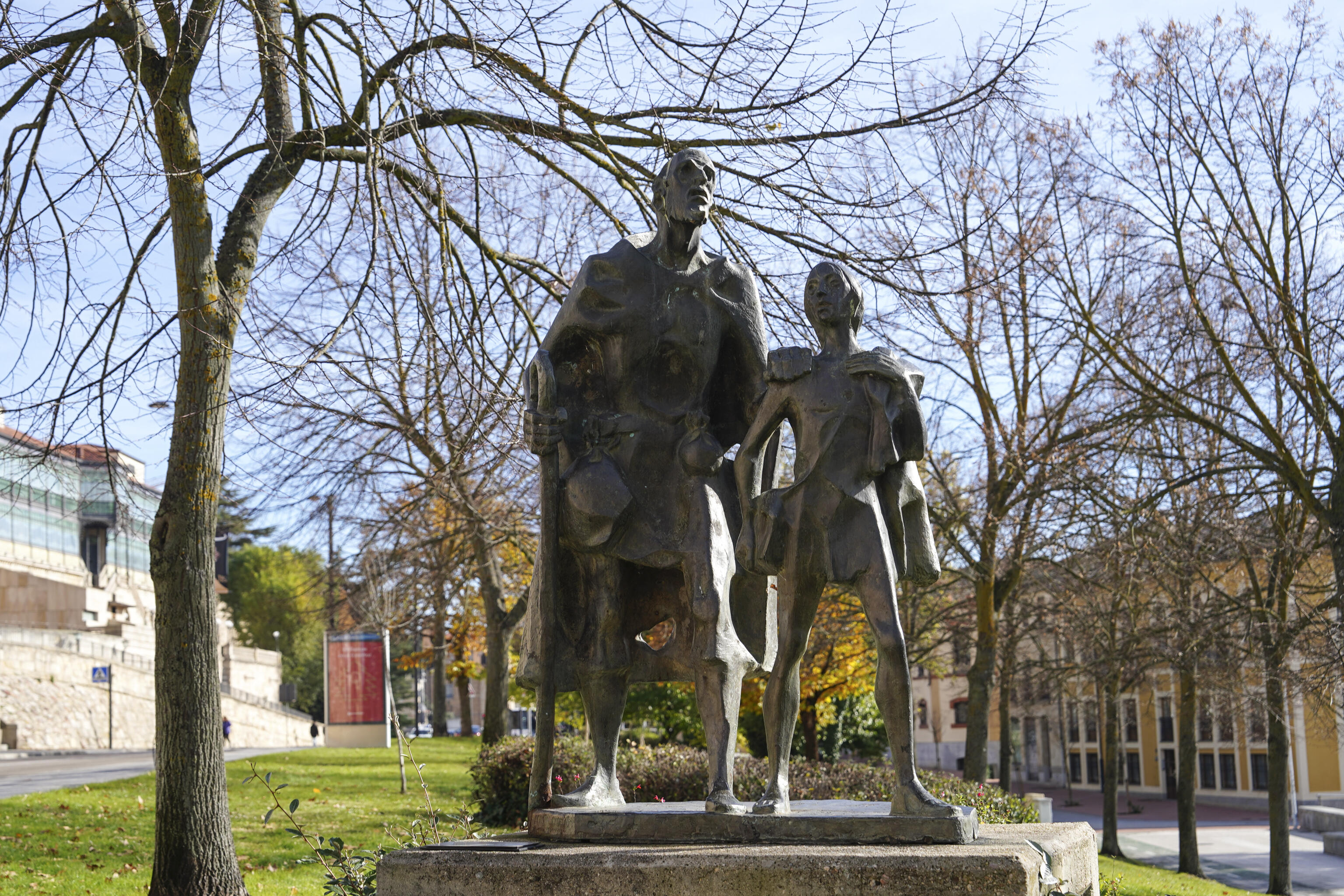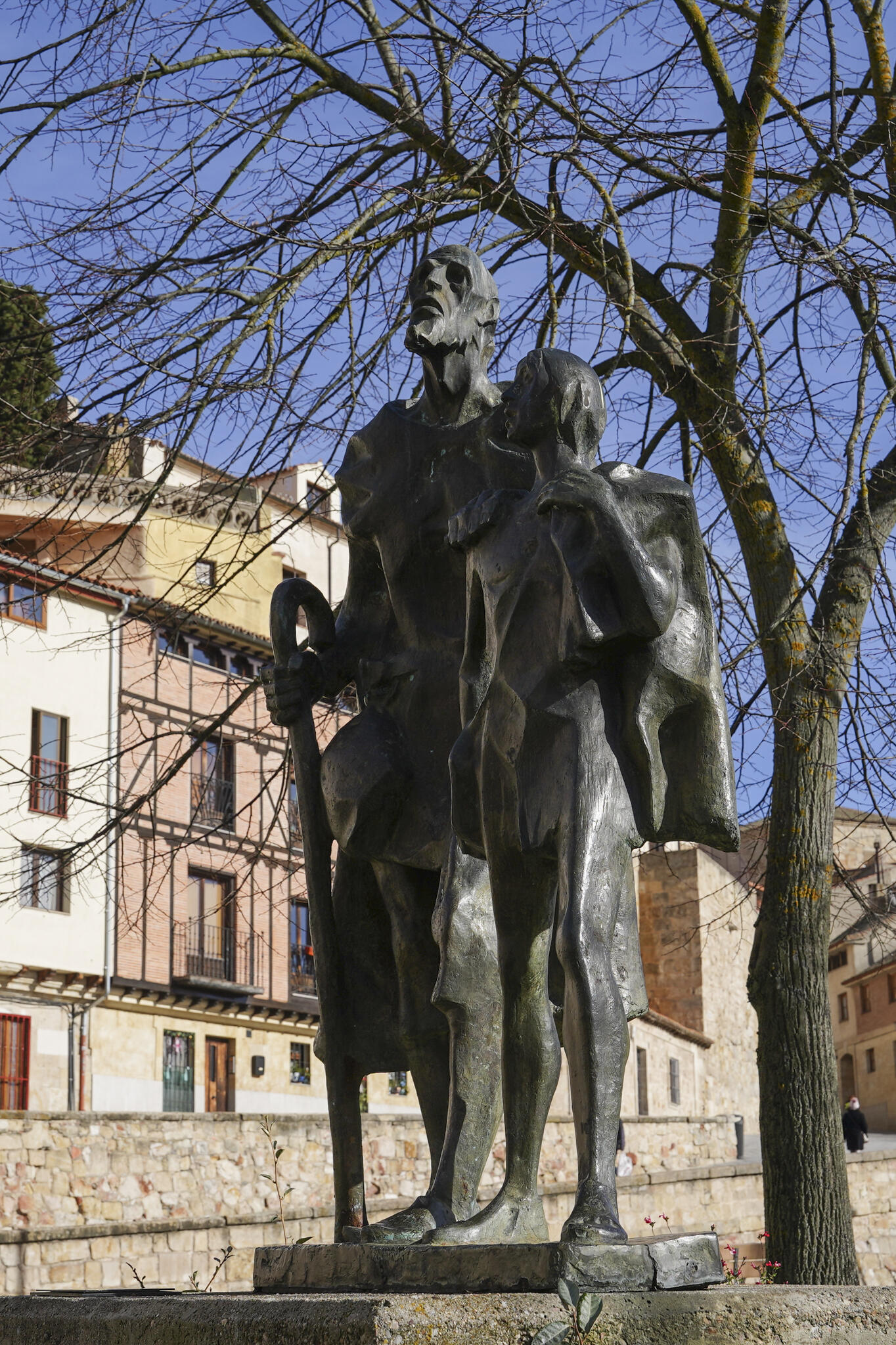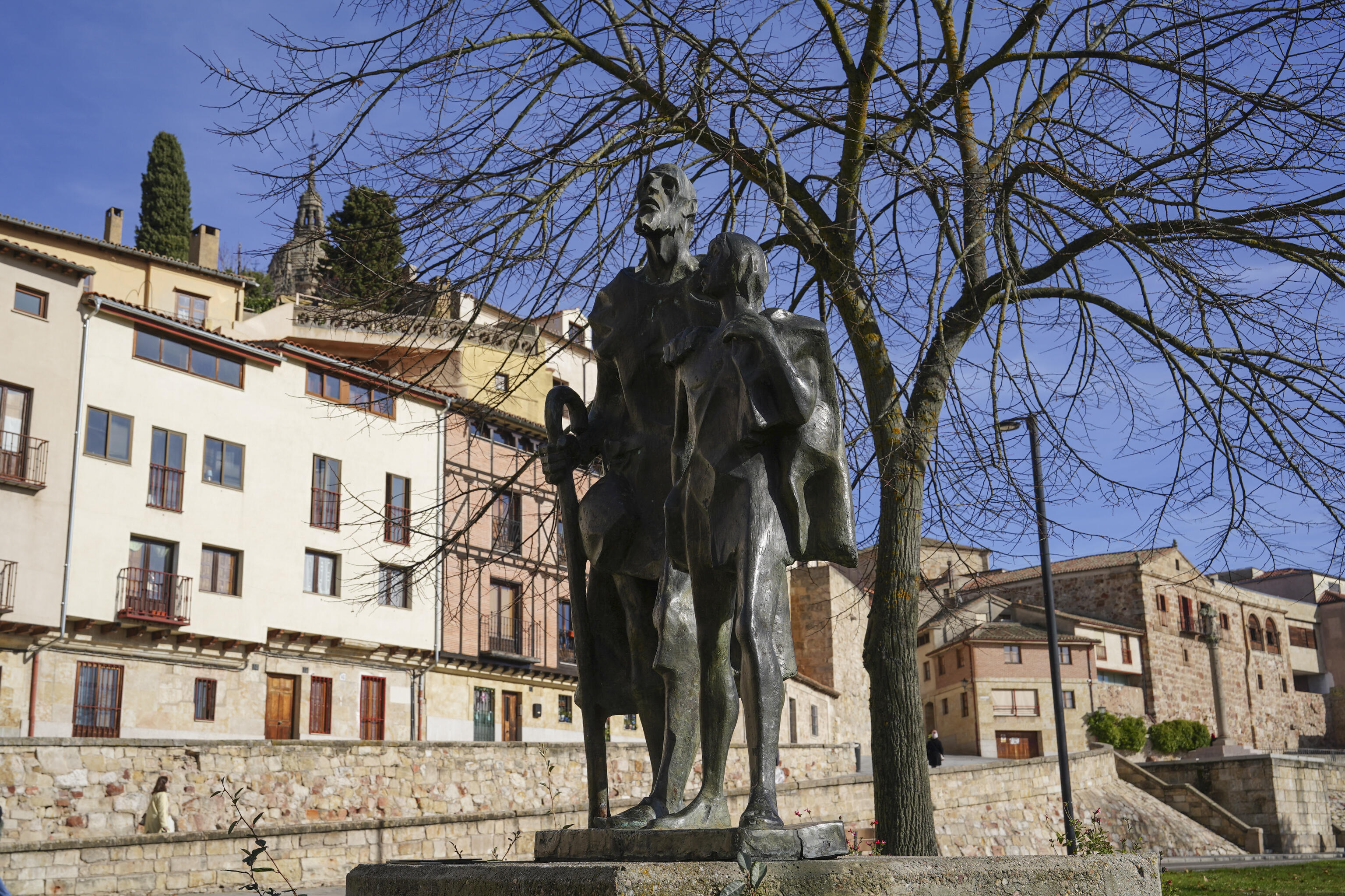 Esta escultura fue encargada por el Ayuntamiento de Salamanca que presidía Pablo Beltrán de Heredia, en 1974. Se instaló en el mes de septiembre a la entrada del Puente Romano en un acto que fue una fiesta con tamborileros, música vino y hornazo por todo el Puente Romano con la presencia de los vecinos de ambos lados del Tormes, que prometieron cuidarla. Está hecha en bronce como materia definitiva.