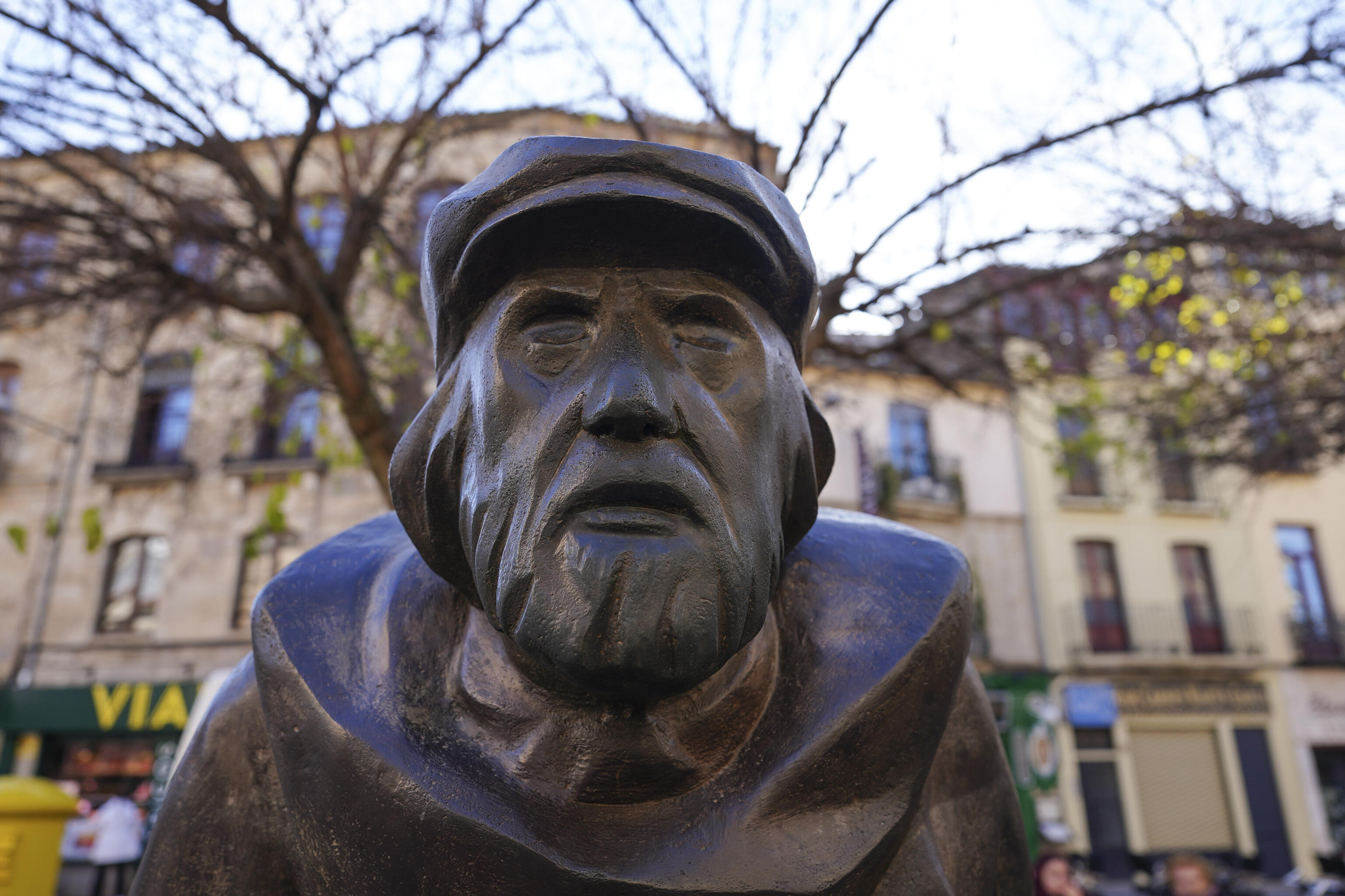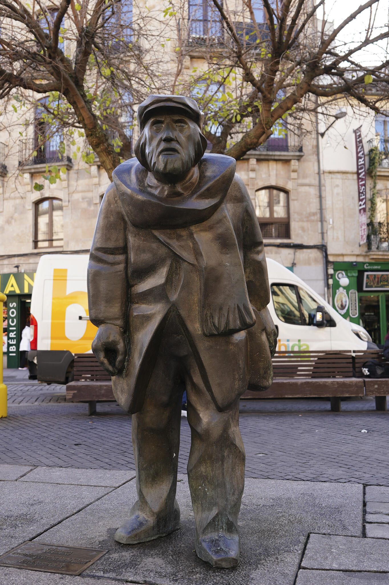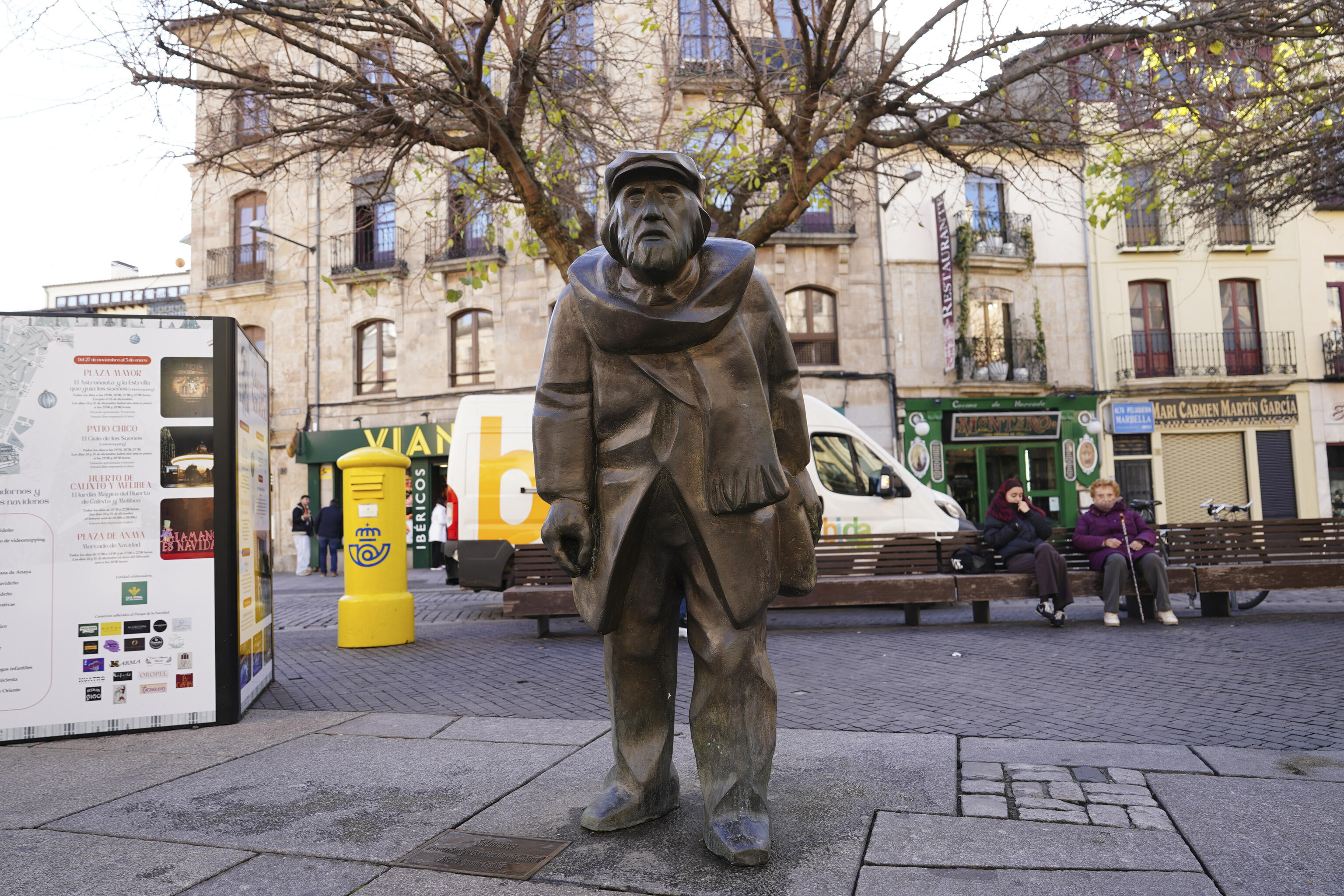 A eso del mediodía, instalaba su puestecillo portátil cerca de la Plaza Mayor en los peldaños de El Corrillo el poeta Remigio González, alias Adares (1923-2001), que era amigo del escultor Agustín Casillas. Ambos se veían casi a diario cuando el poeta subía por la calle San Justo y Agustín salía de su domicilio. Y charlaban del mundo y de la España que les tocó vivir. Adares publicó más de treinta poemarios, entre los que destaca la antología poética “Me atrevo a ser palabra (1977-1996)”. "Adares" murió repentinamente en Salamanca a la edad de 77 años. Sus restos descansan en Anaya de Alba. En diciembre de 2017 el Ayuntamiento le dedicó esta obra póstuma de Agustín Casillas con dos metros de altura y casi un metro de ancho. Esta escultura, fundida en bronce, presenta al poeta salmantino caminando en recuerdo a su habitual recorrido por la calle San Justo hacia la Plaza del Corrillo, donde permanecía durante horas acompañado de sus poesías.