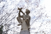 El niño del avión es la escultura más antigua de Agustín Casillas que se conserva en la vía pública. Está en el paseo de Carmelitas junto a una zona de juegos donde hay fuentes también del artista, desde su instalación en 1952. Elaborada en piedra y sobre un pedestal de granito.